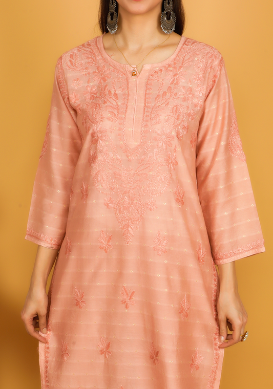 MOHIITO ROSE GOLD LUCKNOWI CHANDERI CHIKANKARI KURTA SET