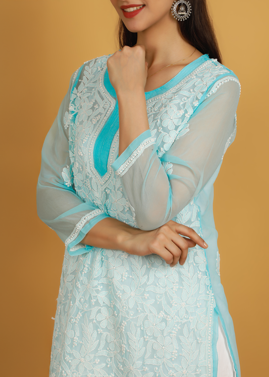MOHIITO SKY-BLUE LUCKNOWI CHIKANKARI KURTA SET
